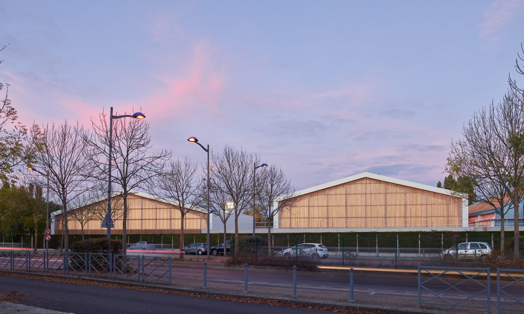 Plus qu’un lieu de production, une cuisine centrale doit avant tout être envisagée comme un lieu de travail. Nous avons œuvré à la rendre agréable et respectueuse de ses utilisateurs. Notre intervention est l’expression de valeurs humaines fondamentales, qui sont la raison d’être d’un tel équipement. Les superpositions fonctionnelles et l’organisation en plan de chacun des deux niveaux construits sont guidées par la recherche de compacité tant du point de vue des volumes que des déplacements du personnel. Largement ouvert sur son environnement, le bâtiment, grâce à ses nombreuses coursives permet de circuler à l’air libre. Les différents percements offrent lumière naturelle et vues en premier et second jour pour les locaux implantés dans l’épaisseur de l’équipement. La particularité programmatique de cette cuisine centrale est l’adjonction d’une cuisine pédagogique. Cette mixité programmatique questionne l’identité architecturale de « bâtiment technique » et explique en partie le soin apporté à la séquence d’approche et aux circulations. Nous avions finalement à cœur de développer une proposition architecturale bioclimatique, interdépendante des aménagements paysagers, reposant sur des solutions low-tech, passives, partout ou leur mise en œuvre est conformes aux performances visées.